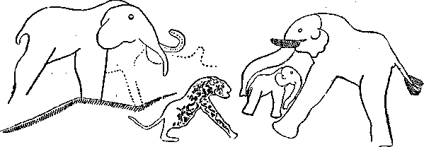 Бой слонов и пантеры. Наскальное изображение из Северной |